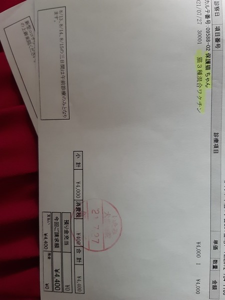 | ワクチン | 済 | 不妊去勢手術 | 未 |