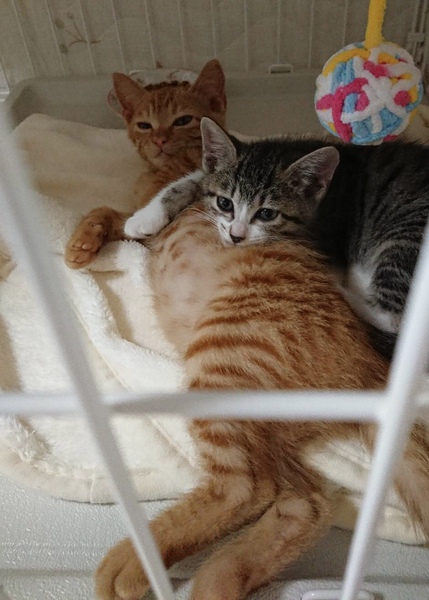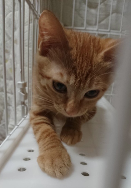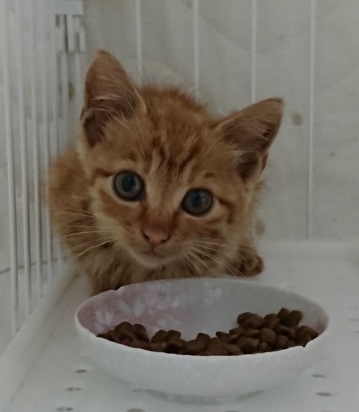 | 特徴(性格など) | 王ちゃん(茶トラ・長尻尾) 健康状態:良好 ウイルス検査(陰性) 3種混合ワクチン接種:済み 検便・ノミダニ駆除薬:済み 7月8日の体重:650g 赤茶トラのハンサムな子猫です。性格は、とにかく控え目で大人しくあまり鳴きません。食いしん坊さんなので、大きくなるかもしれません。抱っこもできますがすぐ固まります。一緒に育っている姫ちゃんと元気に遊んでいます。 |