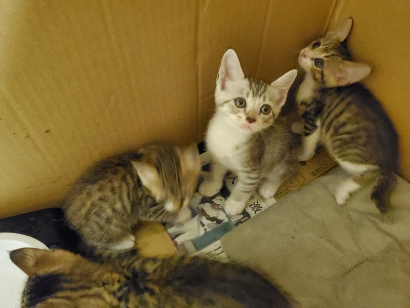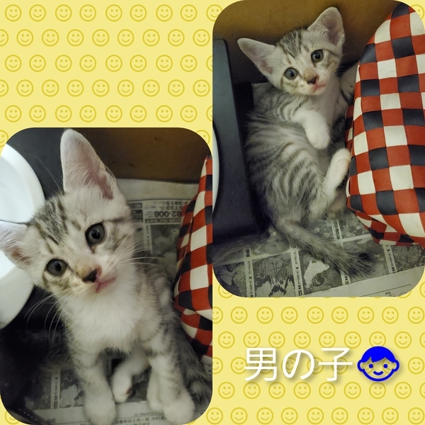 | 里親募集する理由 | 避妊手術前の飼い猫が発情期に予想外の場所から脱走してしまい、その結果産まれた子供たちです。初産にしては7匹と子だくさん!お母さん、細い体で頑張りました。 先住猫が3匹と犬がおりますので、これ以上は育てる余裕がありません。本当に勝手ながら、この度、里親さんを募集させて頂くことに致しました。 とっても可愛い子達ばかりです。可愛いがってくださる方、家族として終生大切に育てて下さる方、是非この子達を宜しくお願いします! |