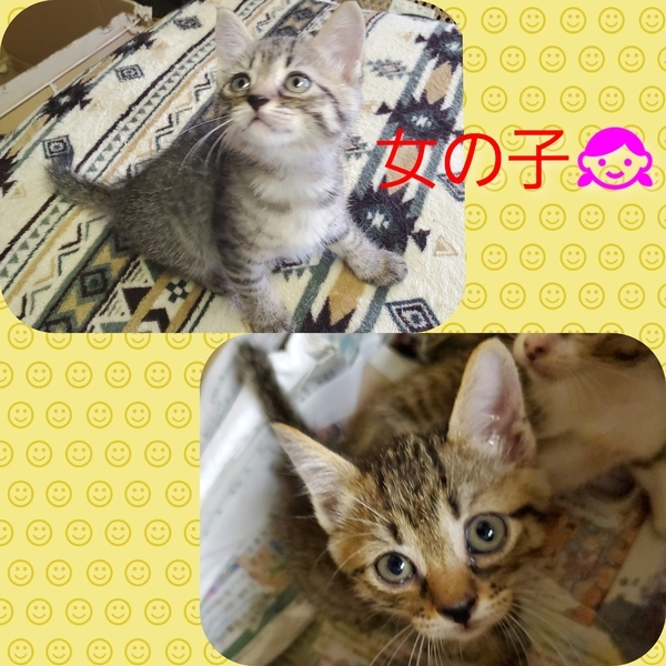 | 里親募集する理由 | 避妊手術前の飼い猫が発情期に予想外の場所から脱走してしまい、その結果産まれた子供たちです。初産にしては7匹と子だくさん!お母さん、細い体で頑張りました。 先住猫が3匹と犬がおりますので、これ以上は育てる余裕がありません。本当に勝手ながら、この度、里親さんを募集させて頂くことに致しました。 とっても可愛い子達ばかりです。可愛いがってくださる方、家族として終生大切に育てて下さる方、是非この子達を宜しくお願いします! |