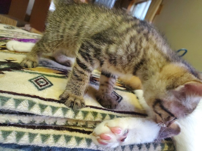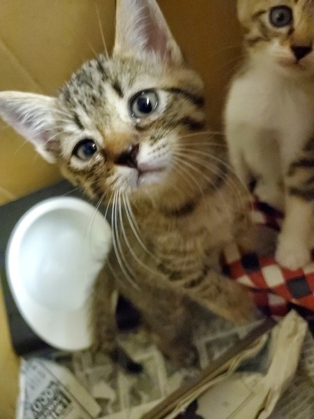 | 特徴(性格など) | キジトラの女の子です!(^^) しっぽの先がほぼ直角に曲がっています。 美人さんです。 |