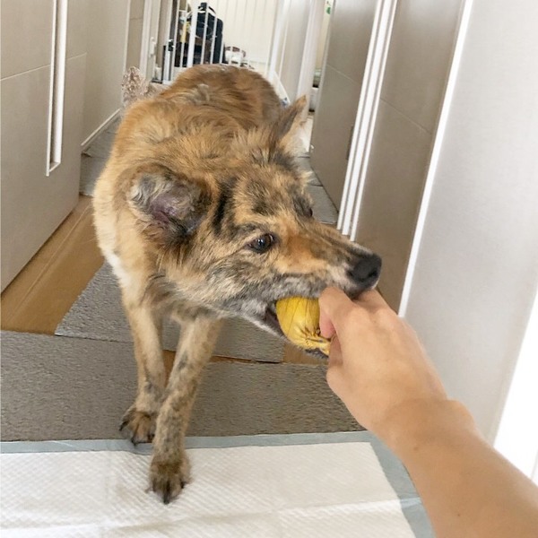 | 特徴(性格など) | 名前:ポテチ 犬種:Mix 性別:オス♂ 毛色:ブリンドルカラー 年齢:6ヶ月ぐらい 体重:12kgくらい 性格:元野犬なはずなのに、とても人に馴れやすいポテチです。 謙虚で可愛らしい子です(^^) 生活する中で苦手なものもありますが、筋金入りのビビリちゃんという訳ではないようです。 周りに誰もいなくて寂しかったり、遊びたい時にキュンキュン鼻鳴きします。 ワンちゃんとも上手に遊べると思うので、先住犬のいるご家庭でも大丈夫と思います。 オモチャで1人遊びも上手です。トイレもシートの上でできます。 ケージに入ってほしい時に促すと自ら入り、寝る時や留守番もケージで大人しく出来る賢い子です。 散歩は練習中で、車や人が怖くて固まったり引っ張ったりしますが、少しづつ慣れていってます。 そして、なによりも飼いやすいのが、全く吠えません!(今のところ) 少し怖がりなポテチですが、克服した先にはとても良い相棒になるのではと思います。ポテチのペースに寄り添って成長させてくれるご家族さま、お待ちしています。 |