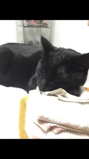 | 特徴(性格など) | 黒色のオス猫です。 脇の下お腹ら辺に白い毛が少しあります。 大人しくとても怖がりで、知らない人が来ると隠れてしまいます。慣れるまでは時間がかかると思います。が、慣れると一緒に布団で寝てくれます。 |