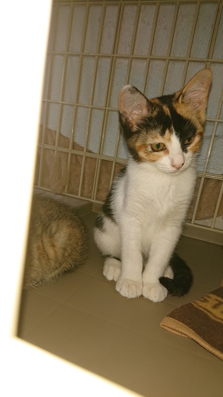 | 特徴(性格など) | 怖がりですが慣れると甘えたになりそうです。 末永く安心して暮らせるおうちの仔になってほしいです。 一緒に保護した姉妹の「うめ」と仲良く一生懸命遊んでよく食べてよく寝て元気一杯です。 ずっと一緒に育っているのでできれば姉妹一緒の迎え入れがベストですが単独でもオッケーです。 |