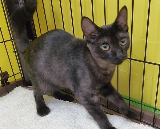| 特徴(性格など) | 殺処分を避けるため、名古屋市動物愛護センターから引き取って来ました。 現在、岡崎の保護猫カフェ「Chaton」にいます。 黒猫はどうしても写真映りが悪いのですが、毛色は黒の中でも柔らかい印象ですし、均整の取れた体つきで小顔で可愛いです。 撫でられるのが好きな大人しい女の子なので、猫とゆったり休日を過ごしたいという方、生活のパートナーとしていかがでしょうか?どうぞ一度、お見合いにいらしてください! |