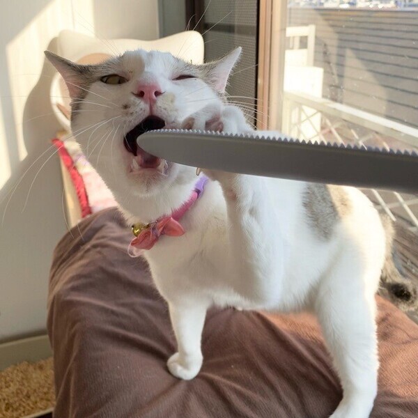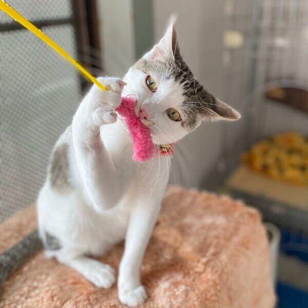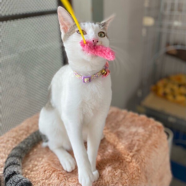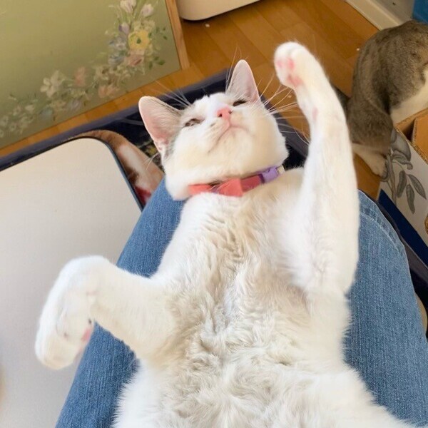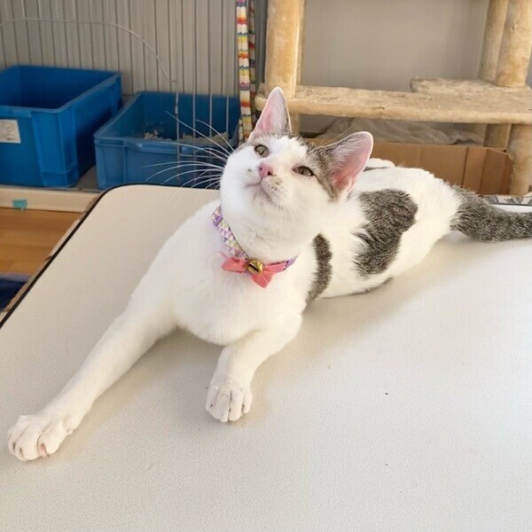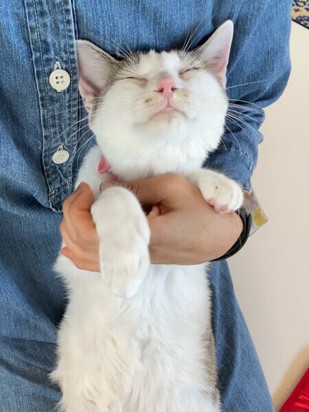 | 特徴(性格など) | おっとり♪まったり♪大好きな「オムレツ」くん❤ 人が大好きで、パウチタイムになるといそいそ♪ 素直な優しい男子です。 現在、ドライフードを24時間の置き餌として、一日2回パウチを与えています。 <推定誕生日:7月始め> |