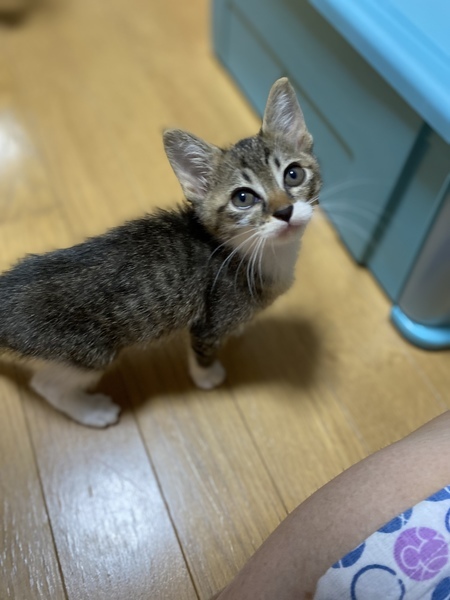 | 里親募集する理由 | 神社で鳴いてるところを保護しました。 近くにはカラスが飛んでいて母猫の姿もなく危険だった為保護してミルクから育てました。 |