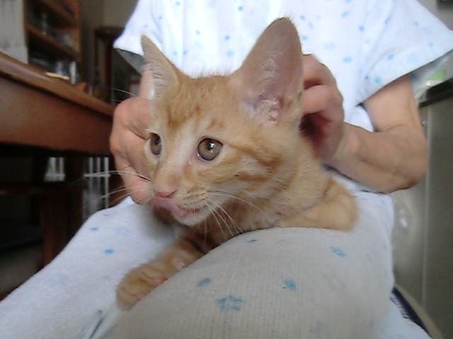 | 特徴(性格など) | 仮称…ちゃー君 4ヵ月位の茶トラの男の子です。 食欲旺盛、元気いっぱいニャンです。 ちょっとビビりさんではありますが、抱っこするとゴロゴロ喉を鳴らして甘えてくれます♪ 将来はまったり癒し系になりそうな茶トラのちゃー君をどうぞよろしくお願いします。 ・去勢手術済み ・ウイルス検査済み(エイズ・白血病共に陰性) ・ブロードライン(駆虫薬)滴下済 ・便検査済 ・ワクチン2回済み |