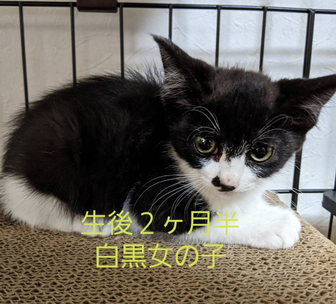 | 特徴(性格など) | 最初は緊張してましたが今は3姉妹で仲良くあそんでます、適応が早く甘えん坊で可愛い子です。 ワクチン一回済み ノミダニ駆除 駆虫済み エイズ白血病お母さん猫で検査済み共に陰性です |