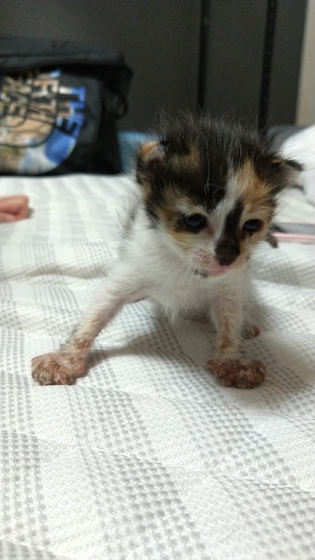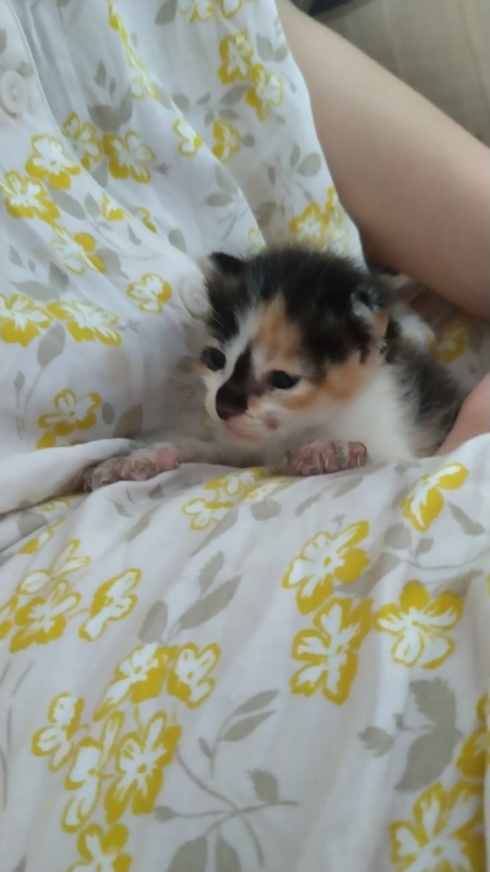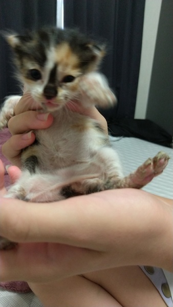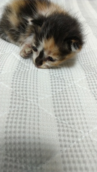 | 里親募集する理由 | 昨夜未明から家の周りで鳴き声が聞こえたので探してみると家の敷地内の雨があたらない場所にいた。 家では大型犬と保護猫1匹がすでにいるため飼ってくれる方を募集します。 |