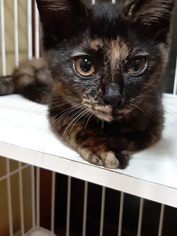| 特徴(性格など) | 柄:サビ猫 とても人馴れした、穏やかな女の子です。 猫同士でも、すぐに馴染む優しい性格。 |