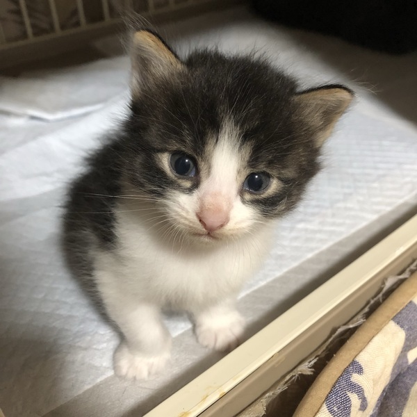 | 特徴(性格など) | 「1匹目」 色柄:黒白 性別:オス 性格:一人遊びが多くマイペース。 抱っこを嫌がるため、爪切りをする際少し時間がかかります。しっぽが短めの鍵型です。 「2匹目」 色柄:サバ白 性別:オス 性格:少し臆病。抱っこ、爪切りは問題なくできます。生後4週までは母親の側から離れませんでした。5週以降は他の仔猫と同様活発に動いています。しっぽが鍵型です。 |