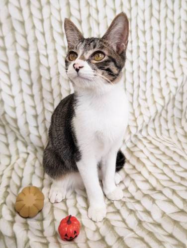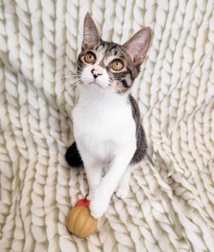 | 特徴(性格など) | 【仮名】ドミニクくん 【性格】ちょっとシャイで末っ子気質かつ甘えん坊なドミニクくん☆ 大人ネコへ甘えるような声で鳴いてすりすりとすり寄ったり、 ゴハンやおやつの時に「ちょうだい」の甘え鳴きなど、 このしぐさに心を奪われること間違いなしです! また、撫で心地の良さも必見です! あごを撫でられるとうっとりして身を寄せてくるところは こちらもうっとりしちゃいます♪ おもちゃ遊びが大好きなのでいっぱい遊べば すぐに距離も縮められるでしょう♪ ネコちゃん大好きなので先住ちゃんのいるオウチか 同世代とペアでのお迎えを希望します♪ ※1匹譲渡相談 |