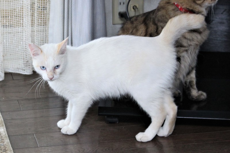 | 特徴(性格など) | 神秘的な大きなブルー(アクア)の目、小顔で足の長いごく淡いベージュ色の猫です。地域猫として暮らしており、耳をカットしてあります。抱き上げ体を触ることはできますが、抱っこにはまだ慣れていません。野良で育った猫には珍しいおおらかで素直な猫です。TV鑑賞が大好きです。去勢、ワクチン接種、ノミ・ダニ防除以外の医療ケアーは受けていません。外観的にはとても健康ですが、左目に涙痕があり毎日洗浄しています。 |