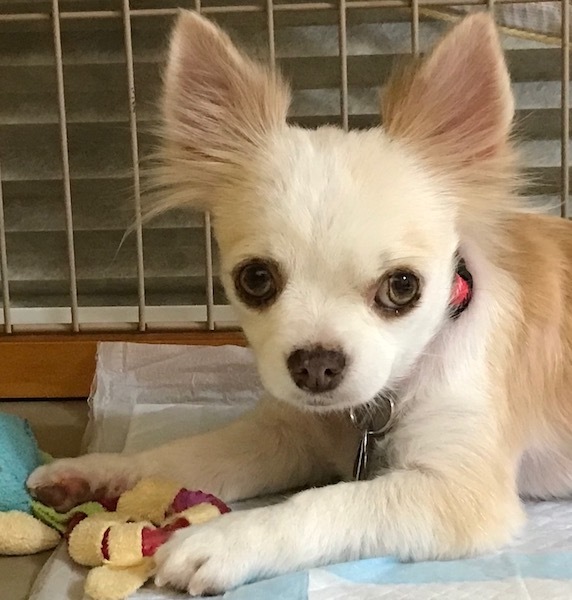 | 特徴(性格など) | チワワの『すう』です。 (ちばわんHP掲載番号No.4243)←申込時は犬の名前とこの番号を記載し、下記内容をよくお読みの上、必ずちばわんHPからお願いします。 ※「生まれた月日」は推定です。生育環境によって誤差が生じることがあります。 【毛色】 白・茶 【体重】 3.6㎏(太り気味) 【状態】 ワクチン接種済、ノミ・ダニ駆除済、駆虫済、フィラリア(ー)、マイクロチップ装着済、疥癬駆除済、一般血液検査異常無、尿検査異常無、スケーリング・抜歯済、乳腺腫瘍摘出済(良性)、狂犬病予防接種済 【人馴】問題なし 【性格・その他】 ロングコートチワワのマイペースなおばあちゃんです。 人馴れは問題ありません。抱っこしていると膝の上で眠ってしまいます。 他犬とは、体格の大きな犬にも喧嘩を売るので相性を見る必要があります。 食事はドライフードを1日2回与えています。食欲旺盛で好き嫌いはありません。 抜歯後、歯が上5本下3本しか残っていませんが、ドライフードも問題なく食べられます。 トイレは、シートの認識があり大小ともほぼ外しません。環境が変わればまたイチから覚え直しとなりますので、長い目で見ていただきたいと思います。 お散歩はちょこちょこと小走りに人について歩きます。 チャイムや来客に警戒吠えをしますが、長く吠え続けることはありません。車酔いはありません。 食いしん坊でキッチンに侵入しようとしますので、誤食対策は必須です。また、すばしっこく足元をすり抜けますので、脱走・逸走には細心の注意と対策が必要です。 保護当初ひどい疥癬のため、広範囲に脱毛が見られました。疥癬の駆除は終わり、被毛は生えて来ましたが、ロングコートになるにはまだ時間がかかると思います。 直径1㎝の乳腺腫瘍があり摘出しましたが、病理検査の結果良性でした。今後は通院時に触診してもらい定期的に経過を観察する必要があります。 帝王切開の痕が複数あり、たくさん子どもを産むために生きてきた子です。これからは、お留守番の少ない穏やかな家庭でゆっくりのんびり過ごせる環境を希望しています。 引き続き室内飼育で、厳重な脱走・逸走防止対策、ワクチン接種やフィラリア予防などの定期的健康管理、その他譲渡時のお約束をしっかり守っていただけるご家庭で、終生家族の一員として大切にしてくださる方からのお問い合わせをお待ちしております。 【預かり場所】 神奈川県川崎市 【日記】104Eの部屋 http://blog.livedoor.jp/t104e/ 【お申込み】 ちばわんの保護犬『すう』への申し込みはhttp://www.chibawan.net/contactform_dogからお願いします。 |