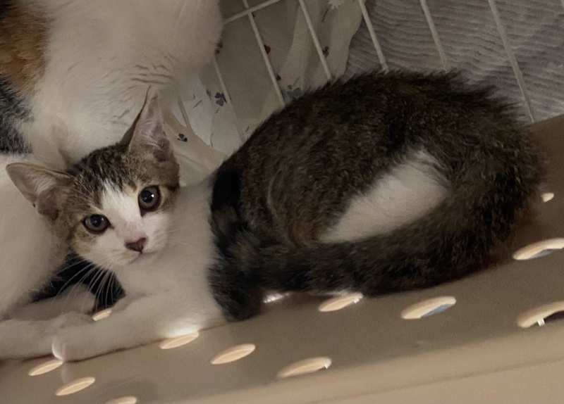 | 特徴(性格など) | キジ白 2021/8/3野良猫のお母さん、他2匹の兄妹と保護しました。性格は穏やかですが、まだ怖がりさんでゲージから出せません。ゲージ内で撫でたりエサをやったりすることはできますます。ゆっくり時間をかければ、きっと慣れて甘えん坊になると思います。 | ||