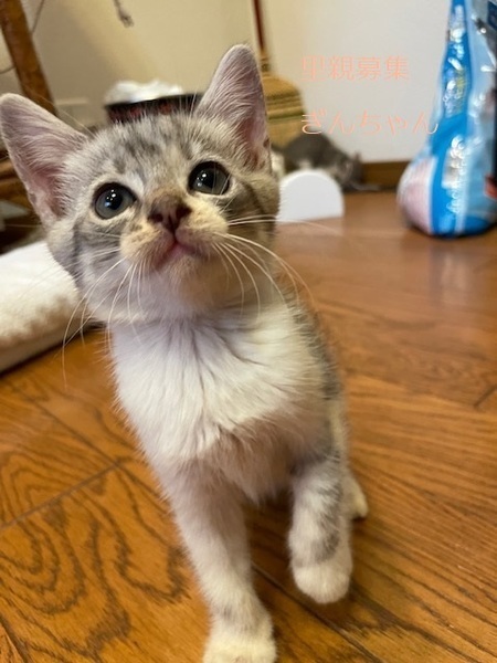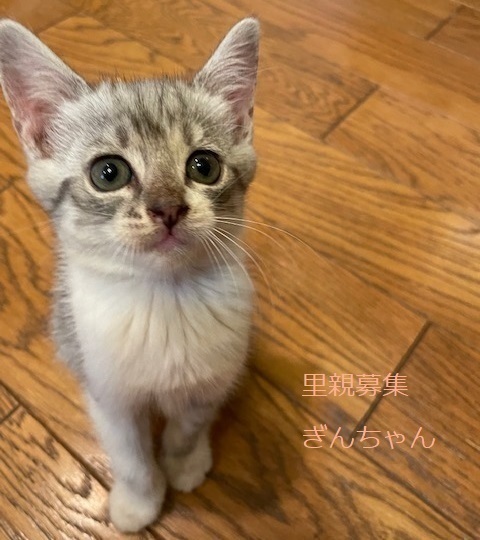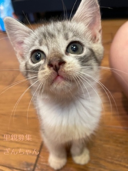 | 特徴(性格など) | サバ白子猫、女の子、仮名:ぎんちゃん 推定生後一か月半くらい、体重:620g(8/20現在) 健康診断済み、フロントライン済み(8/14)、検便済み(8/17) 血液検査-エイズ・白血病-ともに陰性(8/17) ワクチン近日予定。 トイレしつけ済み 甘えん坊のかまってちゃん とっても寂しがりやさん 常に誰かと遊びたい 活発な女の子 9/11、初回三種混合ワクチン接種済み。 10/23、三種混合ワクチン追加接種済み。 |