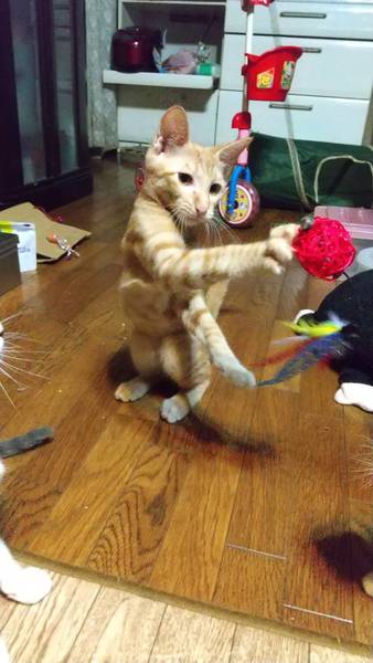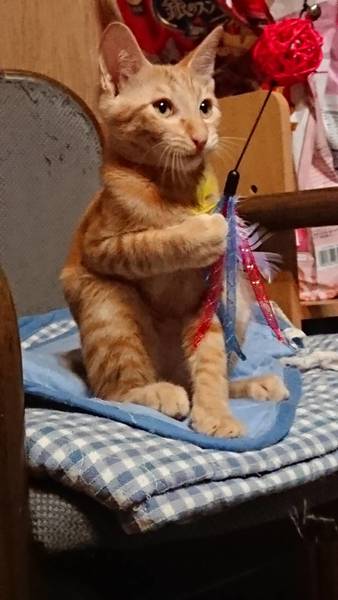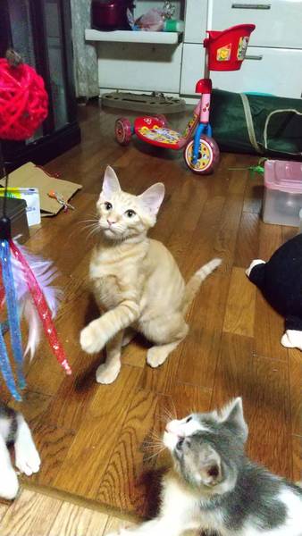 | 特徴(性格など) | きれいな茶トラで長い尻尾が自慢の男の子 よく食べよく寝てよく遊ぶ健康優良児 犬と猫とも人とも仲良くできます☺️ とにかく好奇心旺盛で何にでも目をきらきらさせて反応します とてもかまってちゃんで、忙しくて相手にしないと足に飛び付いてきては逃げてを繰り返し、かまってもらうまで頑張ります 夜もお布団でぴったりくっついて寝てくれます |