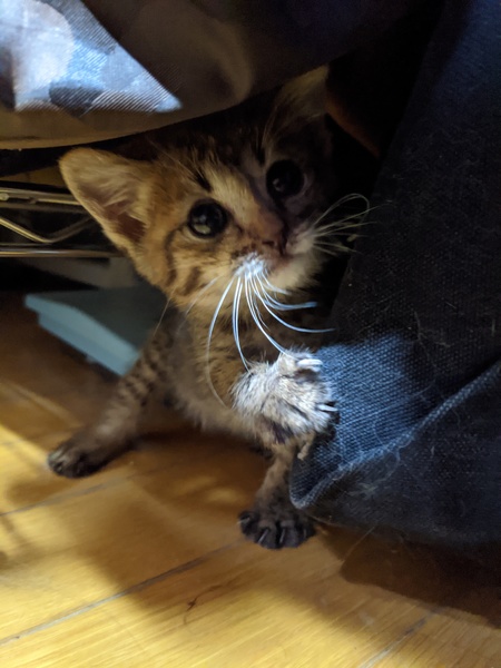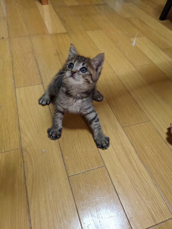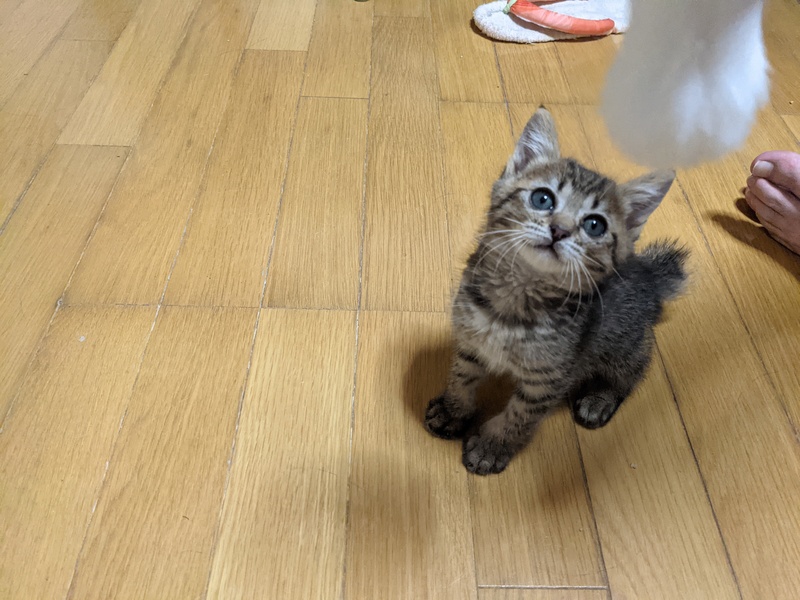 | 特徴(性格など) | キジ猫の女の子です よく食べよく遊び元気いっぱいです しっぽは短いカギしっぽです |
