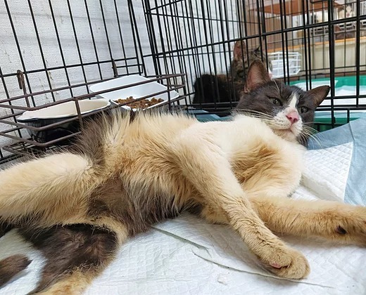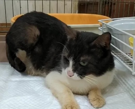 | 特徴(性格など) | ぶち猫『北名古屋24』は、北名古屋の多頭飼育崩壊の現場からレスキューしてきたため、年齢がよく分かりません。また、この現場から連れてきた猫の中で、一番毛の汚れがひどかったのがこの24番ですが、春に毛が抜け替わってキレイになりました。(笑) 最初は少しビビリでしたが、最近は人が近づくと撫ででもらおうとお腹を見せるようになりました! 辛い思いをした分、早く優しい里親様に巡り会い、幸せになれるよう祈っています。ぜひ、本館にてお見合いなさってください! |