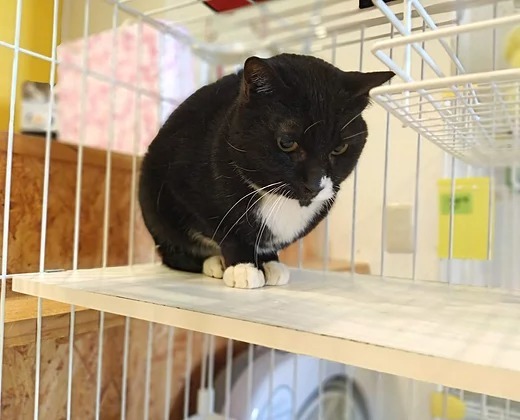 | 特徴(性格など) | 『ぺん』は、目がクリっとしたハンサムです。ひどい内弁慶で、人見知りが激しく、知らない人を見るとケージの隅に逃げ込んでしまいます。でも、一旦、慣れてしまえば抱っこも爪切りもされるがまま!(動画の1分以降をご覧ください。) 今年7歳で人間でいえばアラフィフに当るため、「これから子猫を迎えるのはちょっと心配」という方に特におススメです!ケージから引っ張り出さないと人前に出てこないので、ご来館の折は、ぜひ、スタッフにお声がけください。(顔をご覧に入れます。)(笑) |