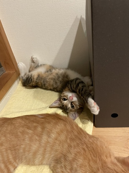 | 特徴(性格など) | 生後3ヵ月程度 仮名「ドール」キジ三毛 女の子 とても人慣れしています。 病院でも検査時とてもお利口さんでした。 |