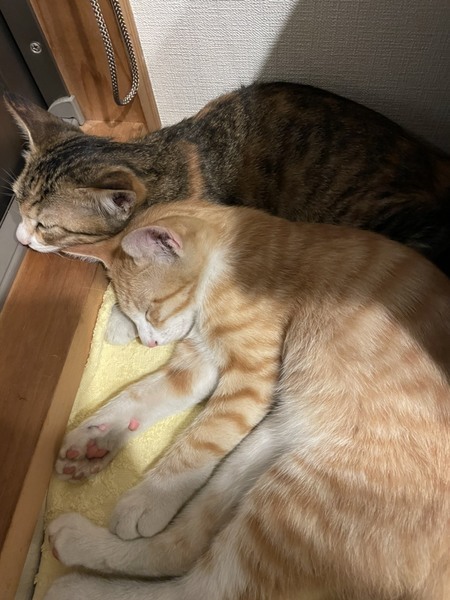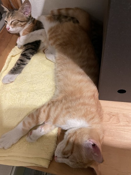 | 里親募集する理由 | 勤務先の駅周辺に親子三匹で住み着いていたのですが、あまりにも人馴れしていたため、虐待のリスクを感じ、保護しました。 兄の「トラン」と日々兄妹で仲良く過ごしておりますので、できれば兄妹一緒のご縁を希望しております。 もちろん単独でもOKです。 ★子猫の2匹飼いのメリット! 子猫は同年代の子と育つことで社会性を見に付けます、噛み癖の軽減にもなります。 子猫同士で遊そんで寝るのでいつもいつも遊んであげる必要もありませんしお留守番も寂しくないです。 兄妹一緒なら相性の問題もなくずっと仲良く過ごせます。 ご飯も一緒、排泄もほぼ同じタイミングでしますので、お世話も大変ではないですよ! 勤め先の駅周辺で保護しました。 優しい里親さまとのご縁をお待ちします、どうぞよろしくお願いします。 |