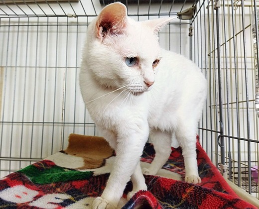 | 特徴(性格など) | 白猫の『タマ』は撫でられるのが大好きなので、現在は「ふれあいルーム」にいます。が、年齢は10歳、人間で言えば56歳を超えており、そろそろアラ還です。(笑) 沢山の猫と一緒に、毎日様々な方と触れ合って過ごすのも楽しいかもしれませんが、やはりこれからは「タマ」だけを可愛がってくださる里親様の元で、残り半生を送ってほしいと願っています。 昔、子猫がひどい眼病にかかった時、目を舐め続けて何とか失明を免れさせたという優しいエピソードを持つ「タマ」。長時間一人でいても大丈夫なので単身者の方、また、ゆったり落ち着いた猫なので、シニア世代の方にもお勧めです。「ふれあいルーム」でお待ちしています! |