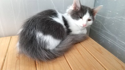 | 特徴(性格など) | 検便・レボリューション済 白グレーの長毛でしっぽはふっさふさです おやんちゃですが、撫でることも出来ます お家で生まれてお家の中だけで育っていますので、お外は知りません 飼い猫が5匹と仔猫の兄弟が4匹居る為か ご飯とおもちゃにかなり執着があり、俺のもの!態度がすごいです でも子供なのでそれも可愛いと受け止めてくださる方を望みます 募集範囲は岐阜県ですが、近郊なら県外でも大丈夫です |