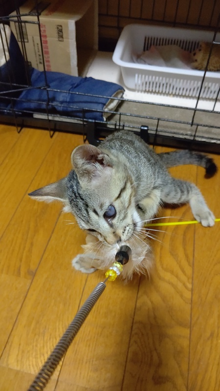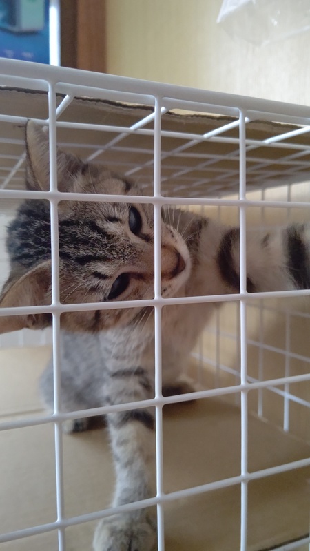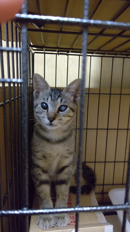 | 特徴(性格など) | キジトラの元気いっぱいな女の子です。 猫風邪の後遺症で両目とも白い膜のようなものができてしまっていますが、視えてはいるようで猫じゃらしやボールでよく遊んでいます。 野良猫ですが、人馴れはしていて抱っこや、なでなでもさせてくれます。 ノミ、ダニ駆除済み 8/11 三種ワクチン一回目済 次回ワクチン接種は9/11頃予定です |