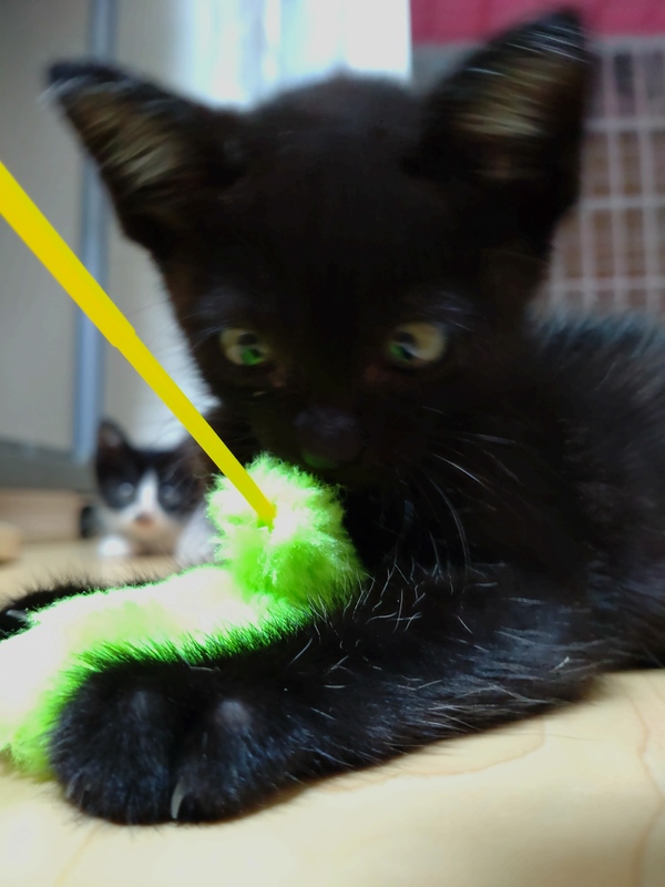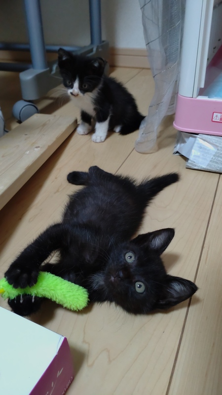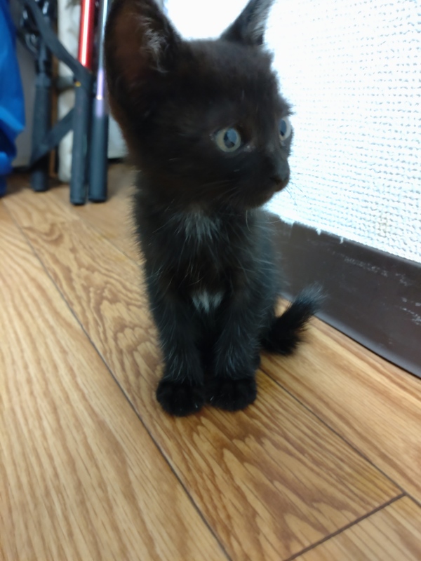 | 特徴(性格など) | 首元、お腹に少し白色がはいっています。 保護した時から走り回って人なつっこく元気いっぱいな女の子です。 甘えん坊で膝の上にやってきては撫でるとゴロゴロと言っています♪ 同時に保護したまゆちゃんと2人で仲良く遊んでいます。 ノミダニ駆虫薬投与済みです。 |