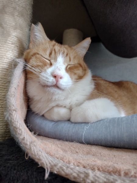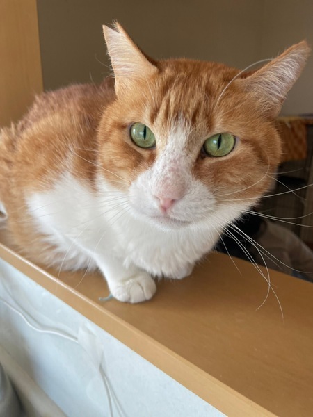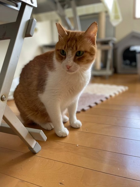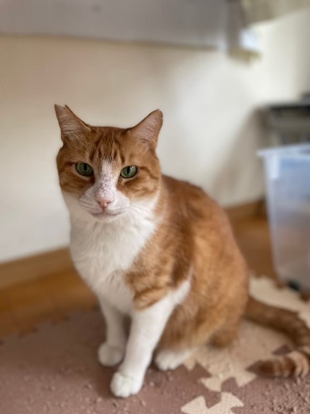 | 特徴(性格など) | 性格は外猫時代に怖い思いをしたのか人になかなか心を開いてくれず、少しのことでお漏らしをしてたこともありましたが今はだいぶん心を開いてくれています。手からチュールやご飯も食べれるようになってきてくれました。少し怖がりでおとなしい子になりますが、他の猫たちと仲良くフレンドリーにできる子です。茶トラと白のハチワレ柄のぽっちゃりっ子になります。 推定5~6キロ 短毛 茶白 猫エイズ(+) 白血病(-) 猫エイズ陽性のりんご猫です |