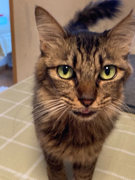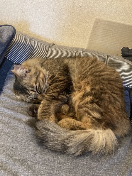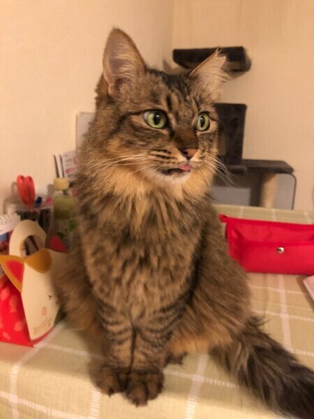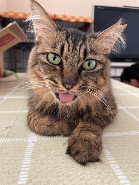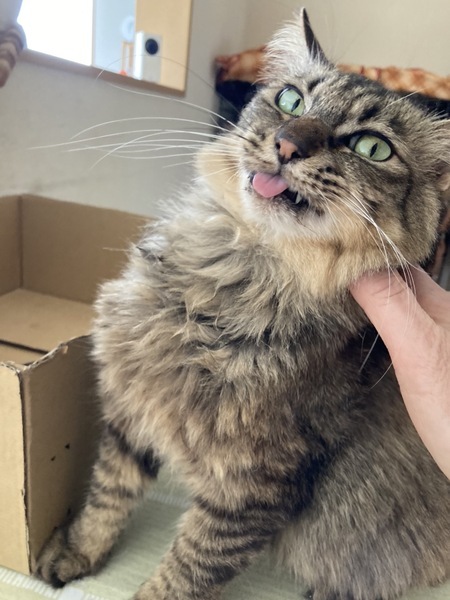 | 特徴(性格など) | ふわふわ長毛の可愛い子です。猫より人が好きなところがあるのでこの子だけで飼っていただける方が良いです。おっとり物腰穏やかでのんびりブラッシングが大好き。とってもかわいい小ぶりな女の子です。猫エイズ陽性のりんご猫ですが今は特に症状もなく元気にしています。 3.8キロ 長毛・キジネコ 猫エイズ(+) 白血病(-) |