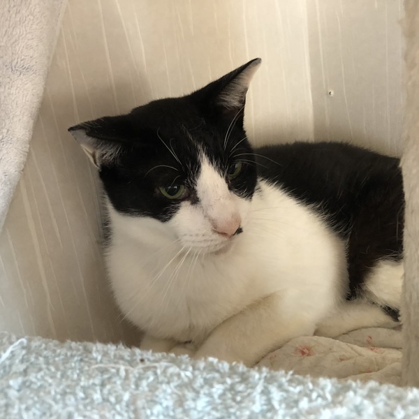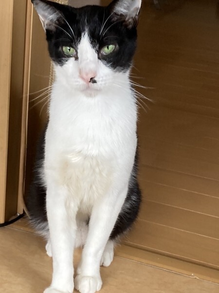 | 特徴(性格など) | 小ぶりなハチワレ男の子です。今はまだ人馴れトレーニング中ですが手からご飯を食べたりはしてくれます。にゃーと可愛い声で鳴いて近寄ってきてご飯を待ってくれてます。猫とは仲良しで、人ともすぐになれるかと思います。 3.8キロ ハチワレ 猫エイズ(+) 白血病 (-) |