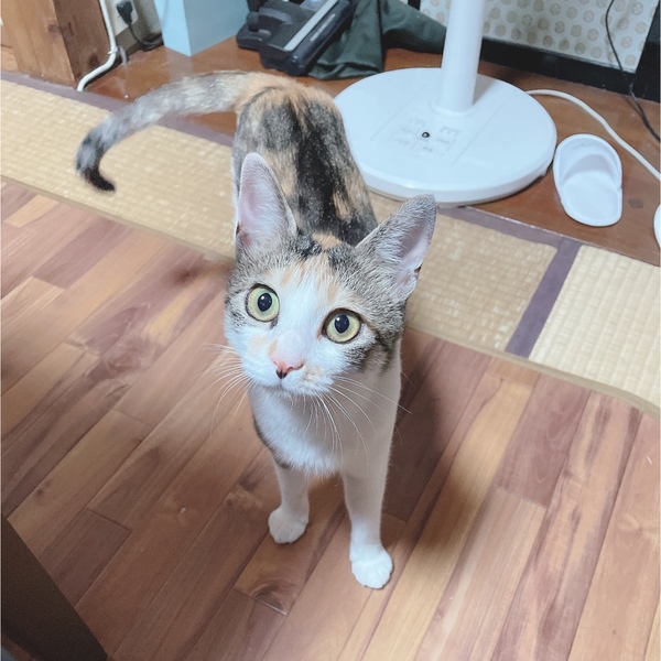 | 特徴(性格など) | 三毛猫とキジトラのミックスだと思います。紐で遊ぶのが大好きで食べるのも大好きです。体重は3.9kgです。性格はツンデレです。特にツンツンしてることが多いです。あとすぐ人になれます。抱っこやしつこく触られるのを嫌がります。 | ||