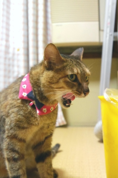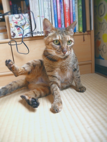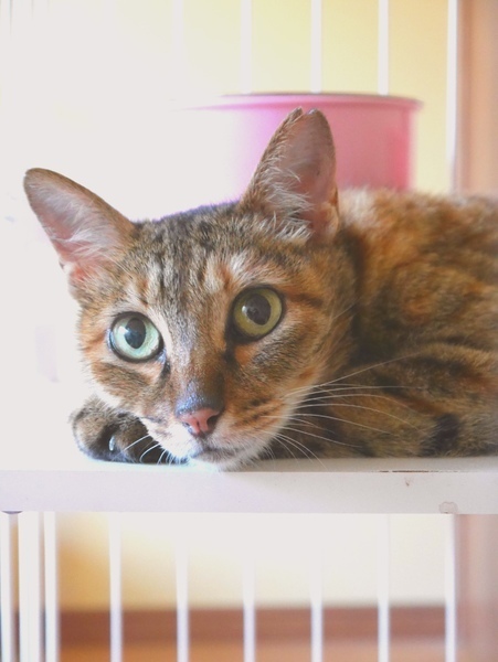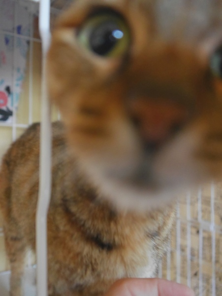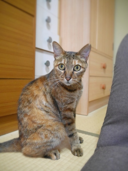 | 特徴(性格など) | とても人懐っこく、保護前後一度も威嚇や引っ掻くなどのない穏やかな子です。 子猫のような可愛い声で甘えます。 人が好きで、なでなで大好きです。 座るとお膝の上に、寝転ぶと胸の上に乗ってくる甘えん坊さん。 ベンガルのような綺麗なお顔、麦わら色の女の子。 【体重】 2.6kg(8/23)→3.1kg(9/2)→3.6kg(9/21) 保護当初とても痩せていましたが、カリカリフードをよく食べおやつも好きで体重が増えてきました(*^^*) |