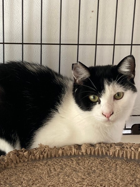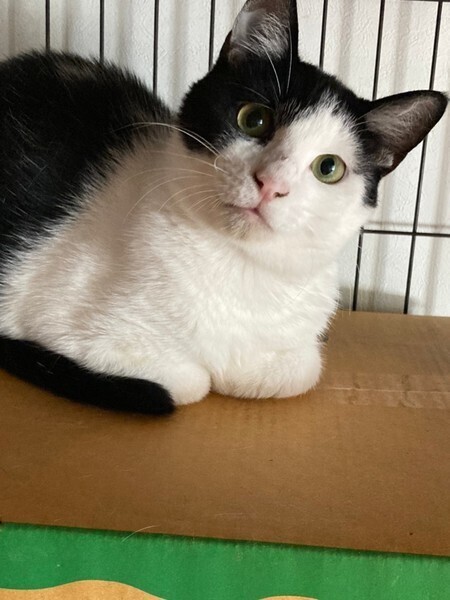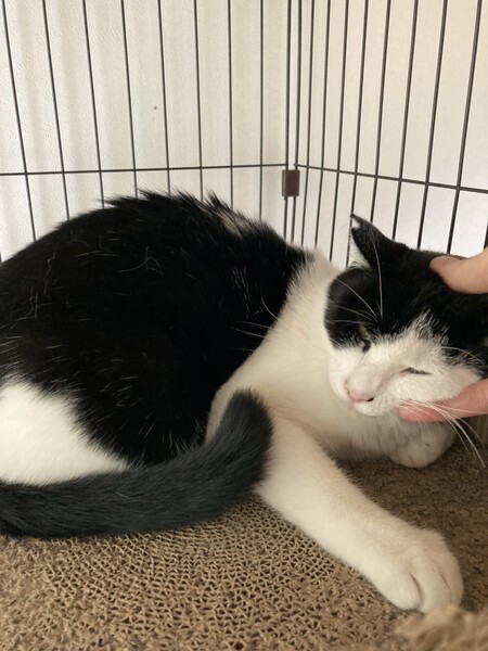 | 特徴(性格など) | まだ1歳~くらいの可愛い男の子です。なでることもお手入れも出来て人馴れもばっちり、遊び盛りの男の子です。猫ともよく遊んでいますがすべての子と相性が良いということではなさそうです。 ハチワレ 猫エイズ(-) 白血病 (-) |