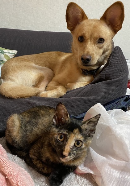 | 特徴(性格など) | とっても人馴れしたやんちゃな女の子です。わんこもにゃんこもいる環境でお世話されたためどちらも仲良しですが、最初は猫見知りするようで威嚇してしまうので、先住さんがいる場合はご理解頂いて見守ってくださる方を希望します。 |