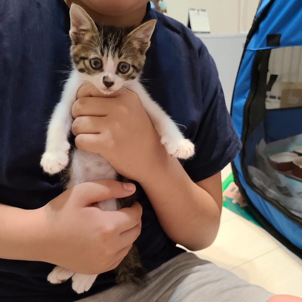 | 特徴(性格など) | キジトラの白多めの男の子? ルーク君と呼んでいます♥ とーっても、寂しがり屋のルーク君はお喋り上手でニャーオニャーオとお話ししてくれます? 同じキジトラのお兄ちゃんのエース君と里親が決まってる妹達との4兄妹です。 できたらお兄ちゃんのエース君も一緒だと嬉しいですが、それはご相談してくださいませ。 |
