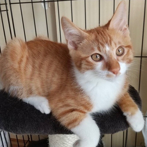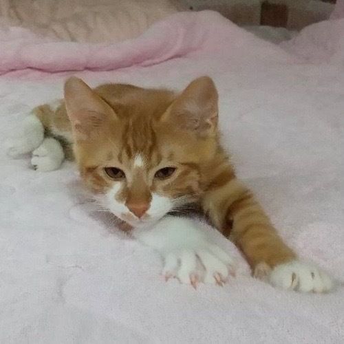| 特徴(性格など) | 天真爛漫で甘えん坊さん。 撫でられのがだ~い好きで、人の手や足にスリスリゴロゴロ。 ご飯やケージフリーなどを待つうきうきタイムは、もちろんお目目キラキラ、ゴロゴロ音は最大級に。 抱っこして爪切りもOKです! 文句があるときは、キュンキューンとかわいらしく鳴いてアピール。 おもちゃをくわえていると、ウ~~と小さく唸ります。独占欲が強い?(笑)まあるいお顔とちょっととぼけたお茶目な顔つき、そして眉間の白い毛がチャームポイント。 たまに怒ると、カギしっぽがボールのように膨らむのもカワイイです! 重吉くん、林太郎くん、仁くんと兄弟です。 兄弟2匹でのお迎えも大歓迎です! 脱走対策、健康管理をしっかりして下さる里親様とご縁がつながると嬉しいです。 |