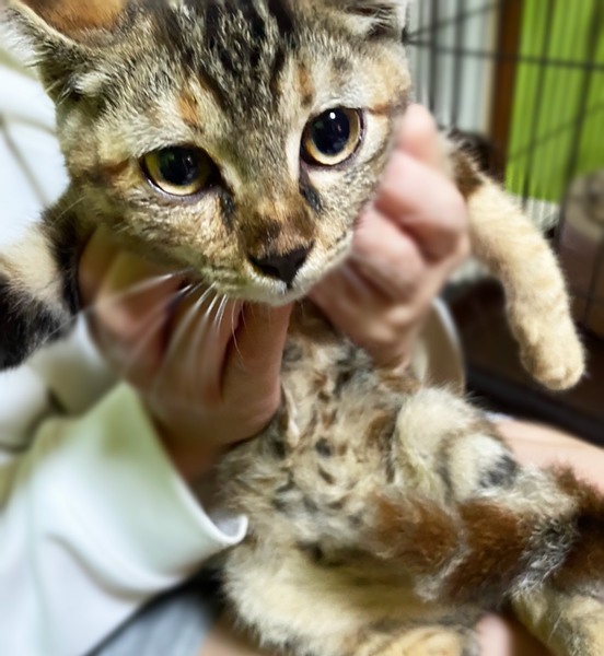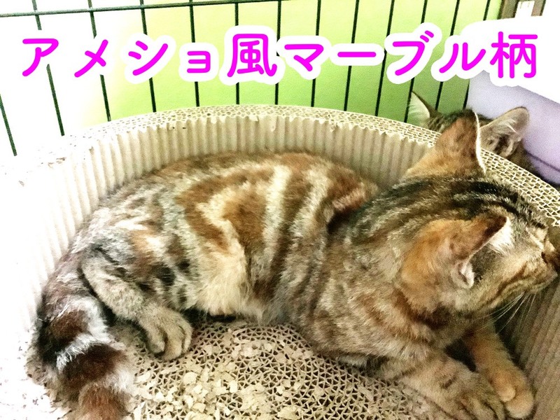 | 特徴(性格など) | アメショ風マーブル模様のお腹と黒いお鼻がチャームポイントのマーブルちゃん。 とてもおとなしくて、のんびりおっとりな女の子です。 抱っこしての目薬もへっちゃらで、良い子です。 幸せのカギしっぽの持ち主です♡ 5匹兄妹で育って来たため、ひとりぼっちが苦手です。できれば、先住さんのいるお宅もしくは、兄妹2匹でご検討いただけると幸いです。 |