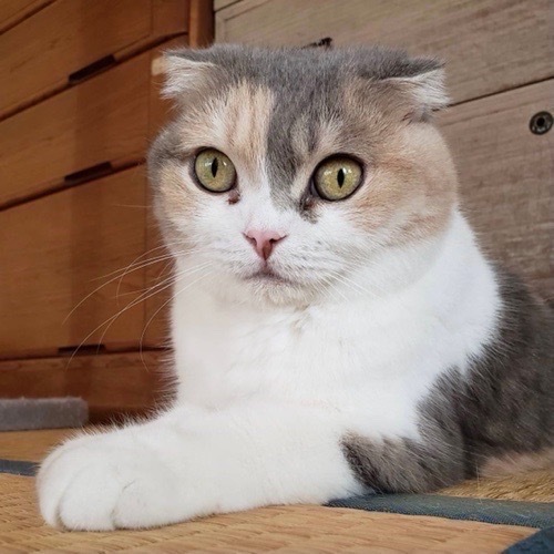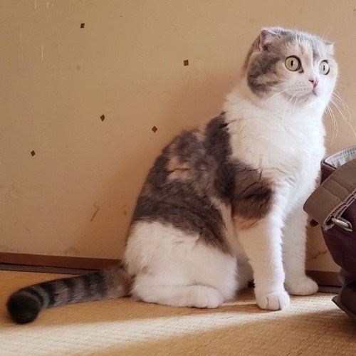 | 特徴(性格など) | みーちゃんは8月16日に保護主のところに来る直前まで、8年間ずっと同じおうちで飼われていました。生まれたお子さんに重度の猫アレルギーが出てしまい、飼い続けるのが難しいとご相談を受け私のところにやって来ました。 8年間いたおうちから、急に保護主のところへやってきたので、最初は戸惑うかなと心配していたのですが、意外にあっさりと今の生活を受け入れてくれました。しかし、もう2度と人間の都合で生活が変わるような思いはさせたくないと思うので、ずっと最後までみーちゃんと一緒に暮らして下さる里親様とご縁がつながると嬉しいと思っています。 性格はおおらかでのんびりとしたマイペースな子のようです。 人間は大好きで、尻尾を立ててスリスリと甘えてきます。構ってほしい時は足に絡みついてじゃれたりもしてきます。 ただ、スコティッシュフォールドという猫種のせいもあるかもしれませんが、あまり抱っこは好きではないようです。(甘えモードの時は大丈夫そう(笑)) あとは手足を触られるのはあまりお好みではないようで、爪切りもちょっと苦手そうです。 8歳という年齢なので、こちらに来てから血液検査なども一通り行いましたが、どこも悪いところはなく現時点ではパーフェクトです(笑) 見た目もスコらしいまあるいお顔と真ん丸な体型で、8歳には見えず若々しいです! 残りの猫生を安心して過ごせるように、脱走対策と健康管理をしっかりお願い出来たらと思っております。みーちゃんをどうぞよろしくお願い致します! |