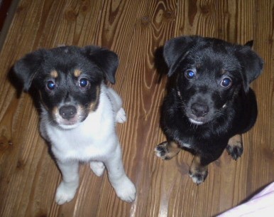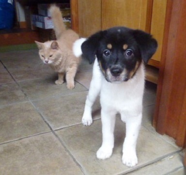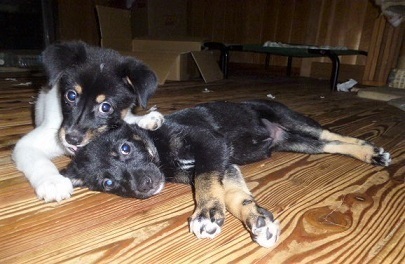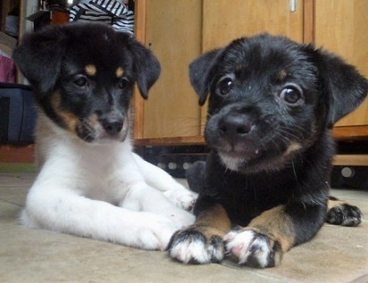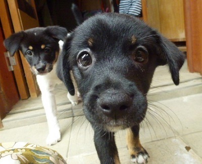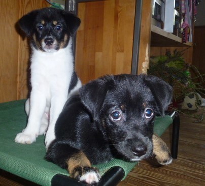 | 特徴(性格など) | ※2匹とも近日中にトライアルを始める予定です。実際にトライアルが始まりましたら募集は終了させていただきます。 ●コロコロとよく遊ぶ子犬姉妹です。 どちらもお顔が黒くて、 体の色の違いで、シロロちゃんととクロロちゃんという仮名をつけました。 体重6キロ弱のヤンママから生まれた子犬ですが、父親が不明なので将来のサイズはわかりません。 今のところ、中型犬に成長するのではないかと予想しています。 ●ヤンママの母犬が早い時期から授乳を嫌がるようになり人間に育てられてきたので、とても人馴れしています。 ●快食快便、天真爛漫、とても活発なお嬢さん達です。 |