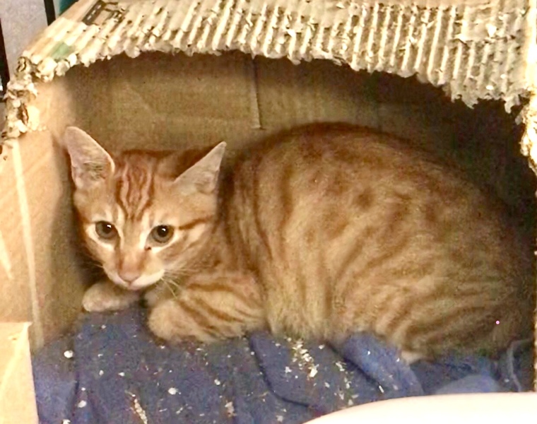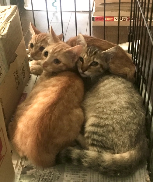 | 特徴(性格など) | おだんごシッポと、少し離れた目のキョトン顔がとても可愛い茶トラのマールくん。 人馴れがもうちょっとですが、臆病なだけで攻撃性はゼロなので、懐くまで時間はかからないと思います。 茶トラさんはおおらかでのんびりさんが多いので、きっと甘えんぼになる予感です! 5匹兄妹で育って来たため、ひとりぼっちが苦手です。できれば、先住さんのいるお宅もしくは、兄妹2匹でご検討いただけると幸いです。 |