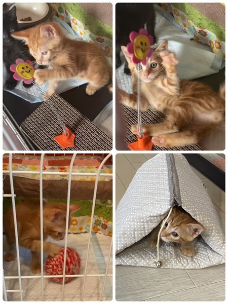 | 特徴(性格など) | 仮名 ちゅらくん 性別 オス 色柄 茶トラ 7月7日頃生まれ 8月10日便検査済 8月10日レボリューション済 9月中旬頃エイズ白血病検査・混合ワクチン接種予定 |