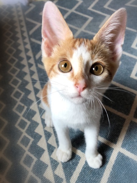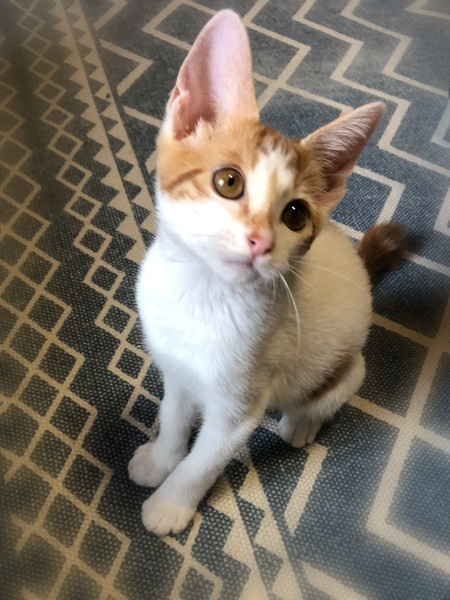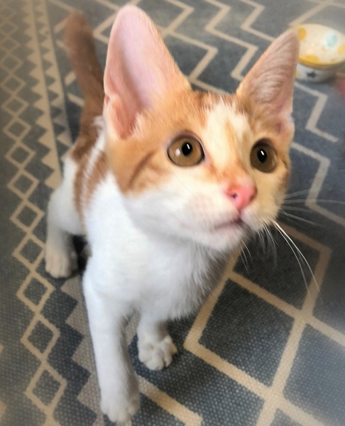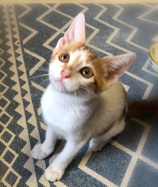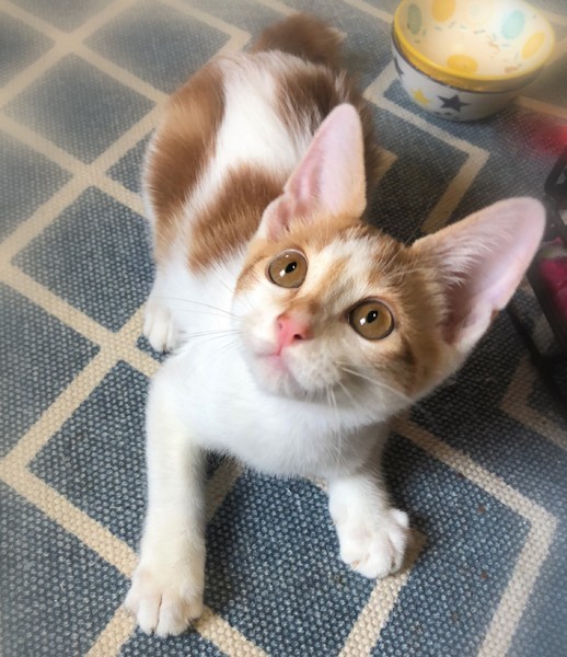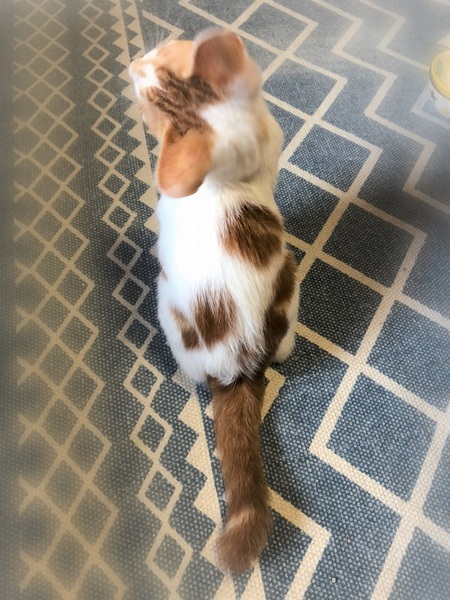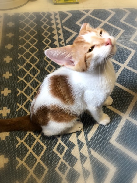 | 特徴(性格など) | ヘーゼル色の瞳・茶シロの男の子 しっぽの先が傘のハンドル部分のようにくるりとしたカギしっぽ 環境の変化に馴染むのに数日必要です。 元気で、とても甘えん坊でおっとりさん。 眠る時は人にぴったりくっついてゴロゴロ~ 撫でると、ずっとくるくる回って嬉しさを表現の可愛い子です。 |