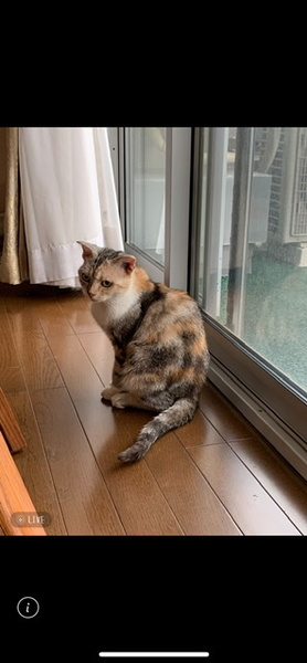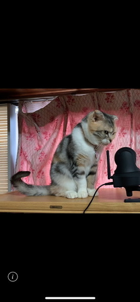 | 特徴(性格など) | 淡い三毛のようなカラーです。 人は好きですが、猫には興味がないようです。 |