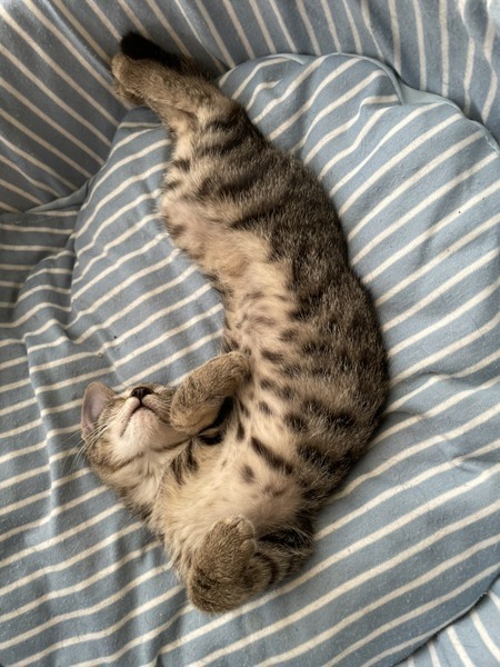 | 特徴(性格など) | ◆ロミロミちゃん ●月齢の小さな子猫は、以下の条件についてご了承の上で応募をご検討下さい。 ◆高齢者のみのご家族からの子猫のお申し込みはお断りさせて頂きます。 ◆お留守番の少ないご家庭を希望します。 ◆小さなお子様のいるご家庭は状況によりお断りする場合がございます。 ○沖縄県内で保護されました。 ○生後2ヶ月半くらい(2021年8月下旬時点)のキジトラの女の子です。 ○尻尾は長くてまっすぐです。 ○性格は静かで穏やか、毛並みは全身綺麗なキジトラです。 ○よく食べてよく遊び、よく寝ます。 ○最初は少し警戒しますが、安全な人だとわかるとスリスリゴロゴロのべったり甘えっ子に変身する、可愛い子です! ○抱っこは苦手ですが、お尻のあたりを優しくとんとんしてあげると嬉しそうです。 ○子供に男性、大きな猫も大丈夫です。 ○まだ小さな仔猫のため、お留守番の少ないおうちをお待ちしております。 ★ワクチン1回済み。 ★猫エイズ、猫白血病ともに陰性。 ★不妊手術とマイクロチップ挿入は成長と体調をみて実施予定です。 ○YouTubeに動画をあげています。こちらもご覧下さい。 https://youtu.be/q2rI4i6MFh4 第8回コロナに負けるにゃー!おーあみ避難所バーチャル譲渡会 https://youtu.be/nczmqcjxIZ0 ★★Zoomアプリを使用して、リモートお見合いを設定することも可能です。まずはお申込みください★★ |