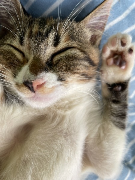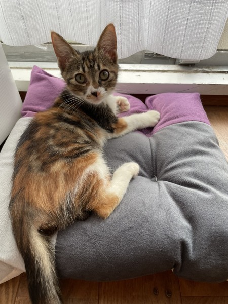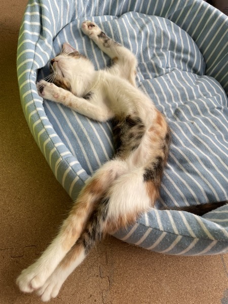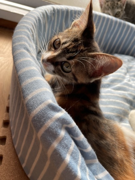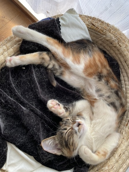 | 特徴(性格など) | ◆マノアちゃん ●月齢の小さな子猫は、以下の条件についてご了承の上で応募をご検討下さい。 ◆高齢者のみのご家族からの子猫のお申し込みはお断りさせて頂きます。 ◆お留守番の少ないご家庭を希望します。 ◆小さなお子様のいるご家庭は状況によりお断りする場合がございます。 ○沖縄県内のセンターからレスキューしました。 ○生後2か月半くらい(2021年8月下旬時点)の、中毛の三毛の女の子です。 ○両脇腹の柄に、大きく白っぽい◯模様が出ているところがチャームポイントです。 ○元気で遊ぶのが大好き。よく食べてよく遊び、よく寝ます。 ○好奇心旺盛、遊んでもらうのが大好きな甘えっ子です。 ○抱っこも好きな可愛い子です。 ○子供も男性も大きい猫も大好きです。 ○まだ小さな仔猫のため、お留守番の少ないおうちをお待ちしております。 ★ワクチン1回済み。 ★猫エイズ、猫白血病ともに陰性。 ★不妊手術とマイクロチップ挿入は成長と体調をみて実施予定です。 ★★Zoomアプリを使用して、リモートお見合いを設定することも可能です。まずはお申込みください★★ |