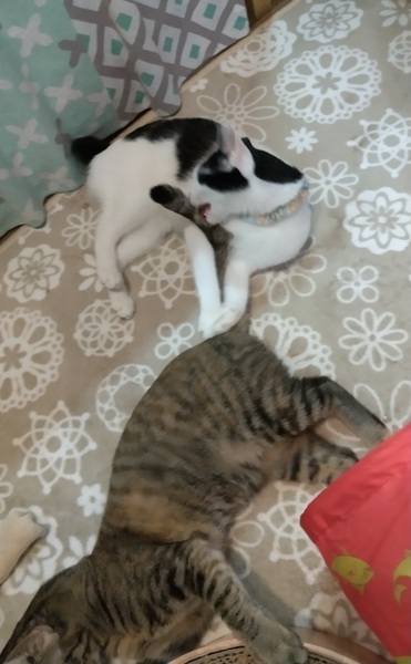 | 里親募集する理由 | 近所で ガリガリの小柄な白黒猫さんをたまたま見つけて…(+o+) 見たことのない子だったので 流れてきたのか 棄てられたのかなと思います。 健康状態 猫の名前:あすかるびー 色柄:白黒猫 性別: ♀ 月齢:1歳( 推定誕生日 2020.6.12 ) 保護日:2021.6.12 ( 1歳未満ぐらい。 体重2.1kg ) 同ケージ猫名:フルティカ、おりちゃん、アメーラ ワクチン接種日:1回目 2021.7.12、(1歳ぐらいなので 次は1年後 ) ウィルス検査日:1回目 2021.6.25、 2回目 2021.8.23 ウィルス検査結果:猫エイズ 陰性 猫白血病 陰性 不妊手術:済み( 2021.6.25 ) マイクロチップ:済み( 2021.6.25 ) 健康状態:子宮蓄膿症の手術済みですが 現在とても元気です。 |
